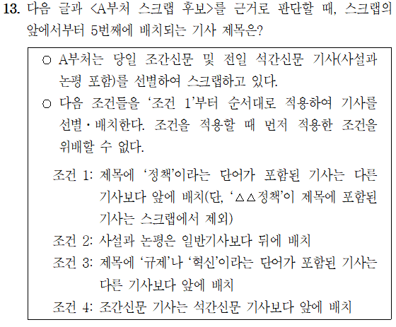 [23행(가)-13해] 2023년 5급 공채 (행정고시) PSAT 상황판단 가책형 13번 해설