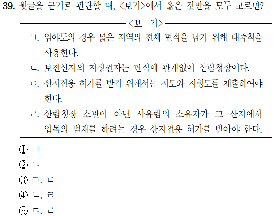 산지전용이란 산지를 본래의 용도 ‘외’로 사용하기 위해 그 형질을 변경하는 것을 말하므로 산지를 본래의 용도가 아닌 용도로 사용할 때 그 허가를 받아야 하는 것이다. 그러나 입목의 벌채는 산지를 본래의 용도로 사용하는 것에 포함되기 때문에 산지전용허가를 받지 않아도 된다.